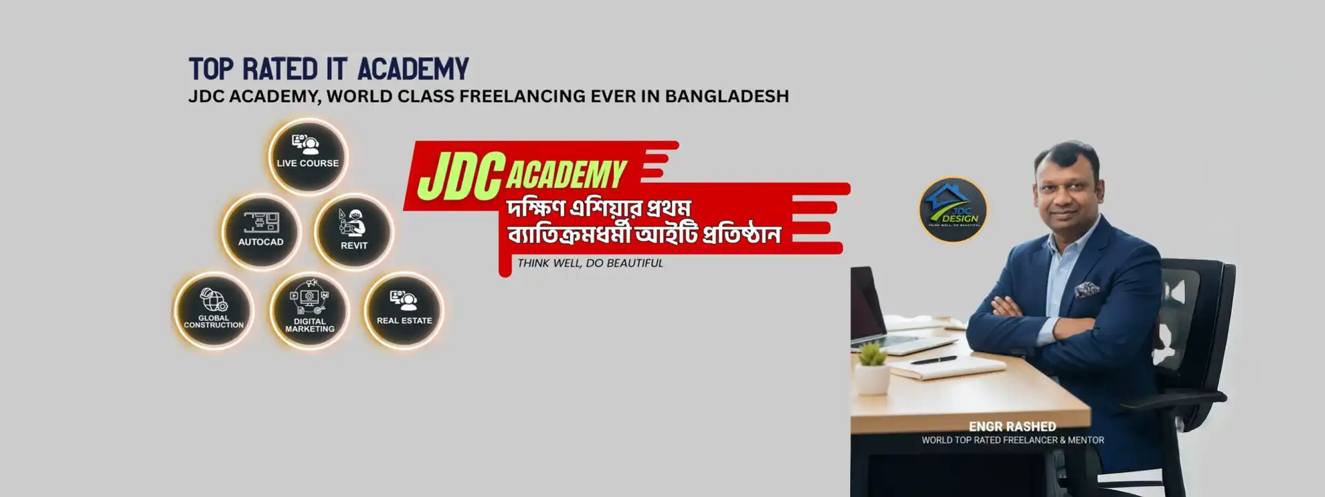 তার প্রতিষ্ঠিত প্ল্যাটফর্ম “JDC academy” বর্তমানে বাংলাদেশের ইঞ্জিনিয়ার, স্থপতি এবং শিক্ষার্থীদের জন্য একটি শক্তিশালী অনলাইন শিক্ষাকেন্দ্র, যেখানে বাস্তবভিত্তিক কোর্স, গাইডলাইন এবং সাপোর্টের মাধ্যমে শেখানো হয় কীভাবে Fiverr, Upwork-এর মতো প্ল্যাটফর্মে ক্যারিয়ার গড়া যায়।